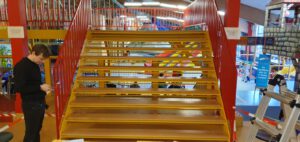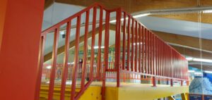 HEIKO Metallbau installiert farbenfrohe Spielpark-Empore in Soltau. Perfekt für Events und Gastronomie. Stahlbau-Exzellenz aus einer Hand.